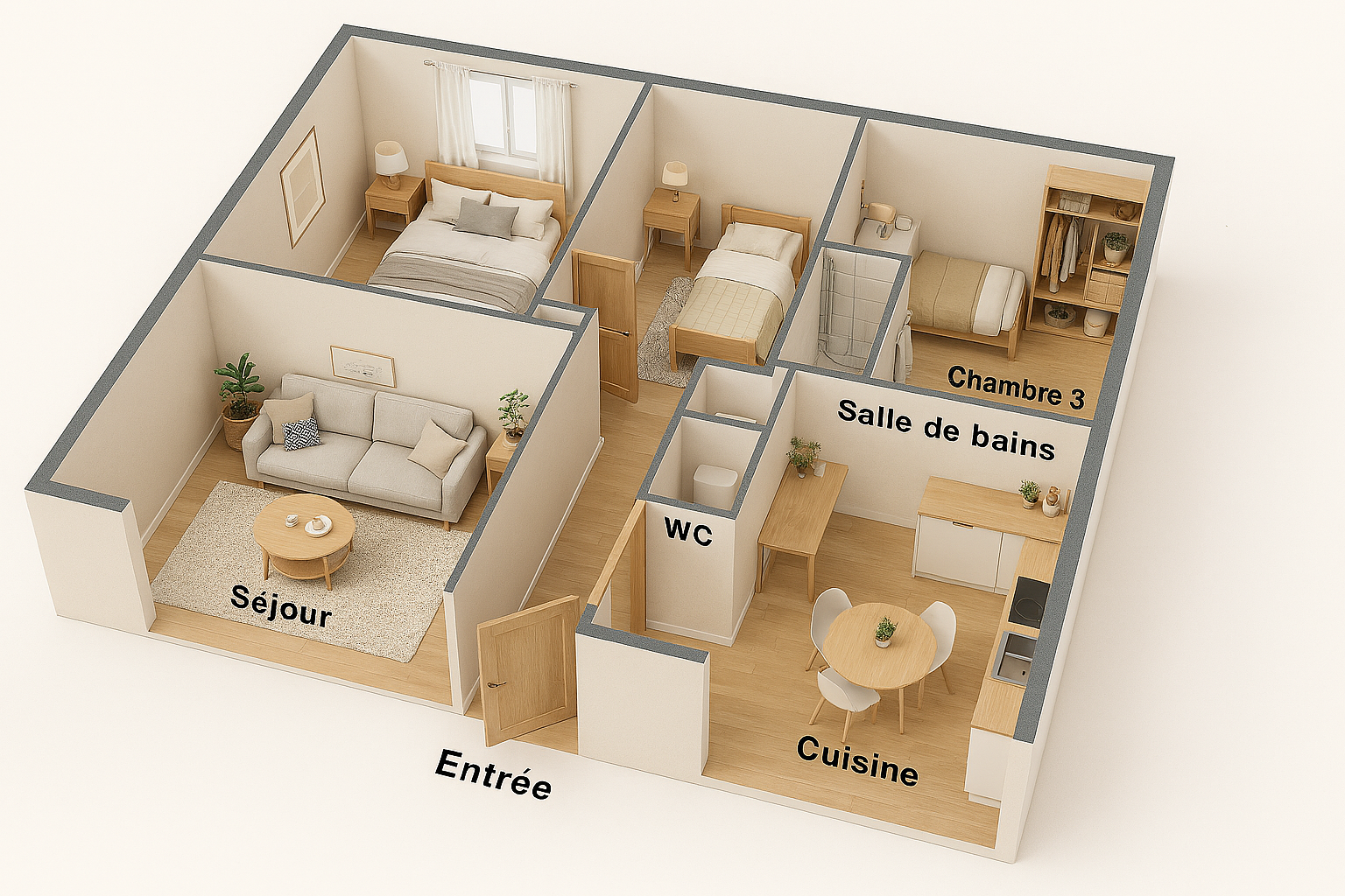 📍 Situé dans une résidence rénovée, au 3ᵉ et dernier étage (sans ascenseur) – aucun voisin au‑dessus, calme garanti.
